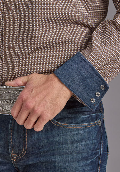 Con un diseño atemporal que fusiona tradición y carácter, esta camisa de la colección Stetson Men's está confeccionada en suave popelina de algodón con estampado integral estilo Diamante Línea Azul. Su corte clásico incluye un canesú trasero curvado ultra profundo de una sola punta, que aporta un ajuste cómodo y estilizado.